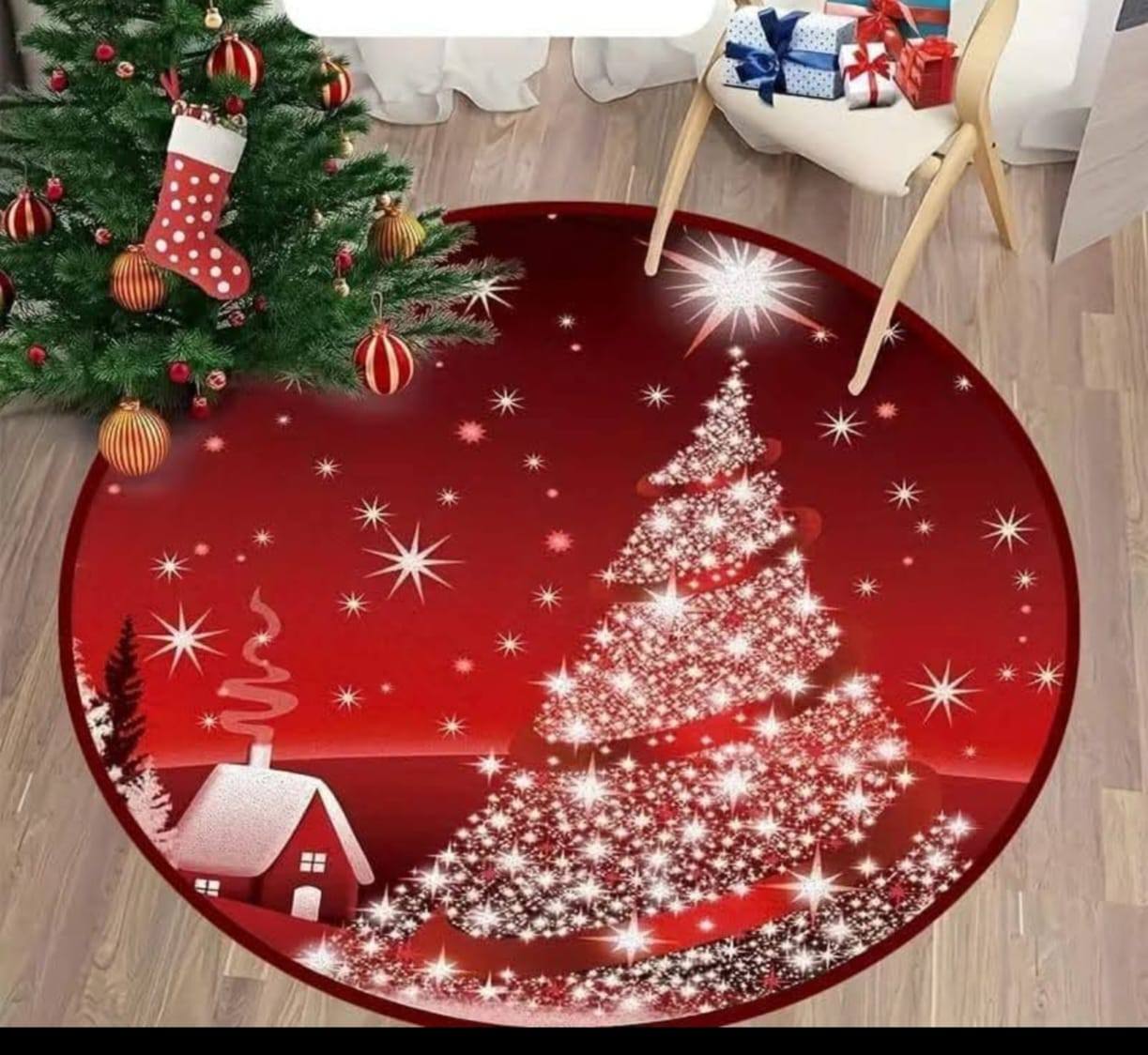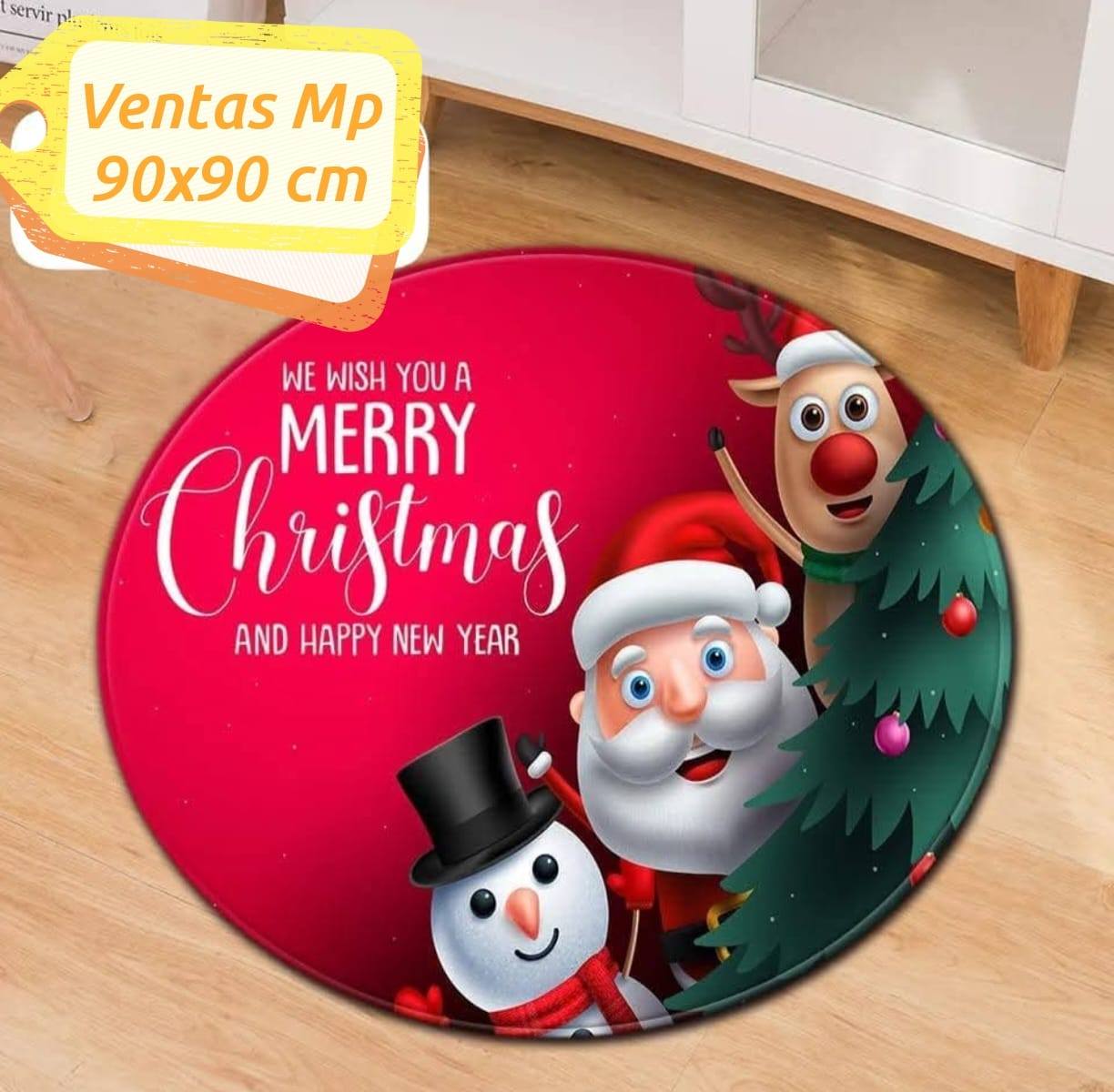 ALFOMBRA NAVIDAD REDONDA ANTIDESLIZANTE 90X90 CM