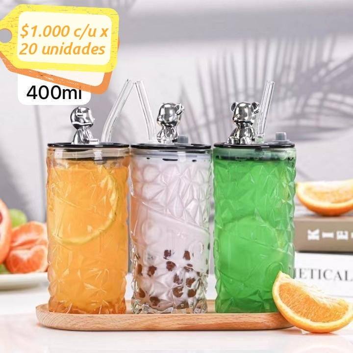 VASO VIDRIO + BOMBILLA OSITO 400ML